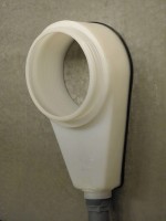 Like some other systems, this slurry collector uses the power of the wet/dry vac to hold the unit to the wall. Where the Slur-ray differs is its ability to adapt to different wet vacs and surface conditions. If more force is needed to hold the unit in place, simply turn the threaded sleeve to restrict the flow thus creating a larger pressure difference. Conversely, if more slurry or dust needs to be removed, the sleeve may be turned in the opposite direction to allow more air through. This level of variability allow the operator to maximize the power of the wet vac to contain slurry and other debris.